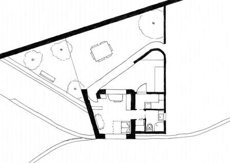 L'edificio è composto da tre spazi: soggiorno, servizi e camera da letto.